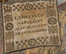 Le 14e régiment de cuirassiers reçoit son premier étendard le , des mains de l'empereur. Il s'agit d'un aigle modèle 1804, remplacé en mai 1812 par un aigle modèle 1811[7]. Ce dernier est capturé le à la bataille de Borissov (en) par le régiment de dragons de Saint-Pétersbourg[8].