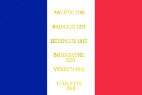 - ↑ Décision no 12350/SGA/DPMA/SHD/DAT du 14 septembre 2007 relative aux inscriptions de noms de batailles sur les drapeaux et étendards des corps de troupe de l'armée de terre, du service de santé des armées et du service des essences des armées, Bulletin officiel des armées, no 27, 9 novembre 2007