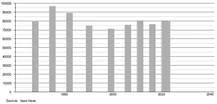 - ↑ Population selon le sexe et l'âge quinquennal de 1968 à 2013 - Recensements harmonisés - Séries départementales et communales