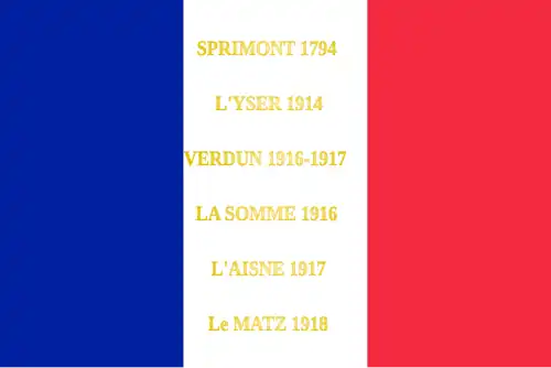 - ↑ Décision no 12350/SGA/DPMA/SHD/DAT du 14 septembre 2007 relative aux inscriptions de noms de batailles sur les drapeaux et étendards des corps de troupe de l'armée de terre, du service de santé des armées et du service des essences des armées, Bulletin officiel des armées, no 27, 9 novembre 2007