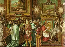 - 9 août : entrée solennelle et soigneusement réglée de Chigi à Paris[15]. Le 12 août, il repart pour Rome. Montausier l’accompagne jusqu’à Dijon.