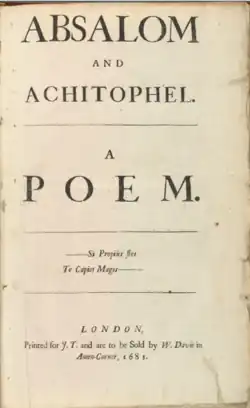 - 17 novembre : John Dryden, Absalom and Achitophel : a poem, London, Jacob Tonson, (présentation en ligne), satire politique.
