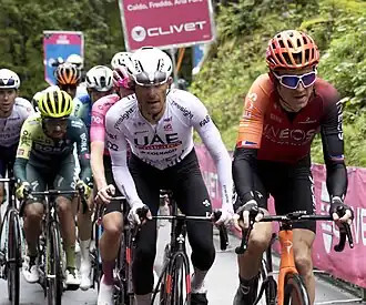 Avant le sommet, l'Érythréen Amanuel Ghebreigzabhier (Lidl-Trek) attaque, poursuivi par l'Allemand Georg Steinhauser (EF Education). Ce dernier le rejoint dans la descente à 53 km de l'arrivée. Le peloton maillot rose pointe alors à trente secondes. Il est à noter que ces deux coureurs faisaient déjà partie du précédent groupe de dix attaquants. Lors de la première montée du Passo Brocon, les deux hommes portent leur avance sur le peloton à 1 min 30 s. À deux kilomètres du sommet et 34 de l'arrivée, Steinhauser lâche Ghebreigzabhier et passe le col seul en tête. Il fait le forcing dans la descente et se retrouve au pied de la seconde et ultime ascension du Passo Brocon avec un avantage d'une trentaine de secondes sur Ghebreigzabhier et 2 min 30 s sur le groupe maillot rose. À la moitié de la montée, Steinhauser augmente encore son avance à plus de trois minutes sur le groupe maillot rose qui temporise. À deux kilomètres et demi du sommet, le maillot rose Tadej Pogačar accélère et s'en va seul derrière Georg Steinhauser. Mais l'Allemand a une avance suffisante et remporte sa première victoire depuis son passage chez les professionnels en 2022.