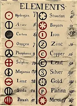 - 6 septembre : le chimiste et physicien britannique John Dalton caractérise les corps simples et les corps composés par des symboles et établit la première table de poids atomiques sur ses carnets de laboratoire[15].