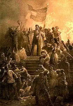 Révolutionnaires valaques à Bucarest arborant le drapeau tricolore