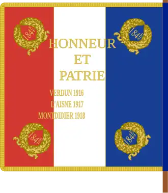- ↑ Décision no 12350/SGA/DPMA/SHD/DAT du 14 septembre 2007 relative aux inscriptions de noms de batailles sur les drapeaux et étendards des corps de troupe de l'armée de terre, du service de santé des armées et du service des essences des armées, Bulletin officiel des armées, no 27, 9 novembre 2007