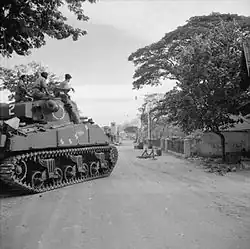 - 21 janvier : la 26e division indienne débarque sur l’île birmane de Ramree[29], prend le port stratégique de Kyaukpyu et occupe désormais toute la péninsule de Myebon[30]. Le blocus japonais de la Chine est brisé, les forces chinoises font la jonction sur la route de Birmanie totalement dégagée.