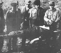 - 9 octobre : mort de Che Guevara au hameau de La Higuera en Bolivie. Capturé la veille, il est abattu de deux rafales par un sergent de l’armée bolivienne[32]. Ernesto "Che" Guevara avait installé quelques années auparavant un foyer (foco) de guérilla révolutionnaire dans la précordillère andine. Le lendemain, les soldats populariseront l’évènement en se faisant photographier par le reporter de l’agence UPI autour du cadavre à demi-dénudé étendu sur un brancard. Cette photo, où le Che porte cheveux longs et barbe, fera beaucoup pour sa légende ; la ressemblance avec le « Christ au tombeau » peint par Andrea Mantegna en 1490 est frappante de similitude.