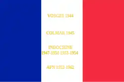 17. Décision no 12350/SGA/DPMA/SHD/DAT du 14 septembre 2007 relative aux inscriptions de noms de batailles sur les drapeaux et étendards des corps de troupe de l'armée de terre, du service de santé des armées et du service des essences des armées, Bulletin officiel des armées, no 27, 9 novembre 2007