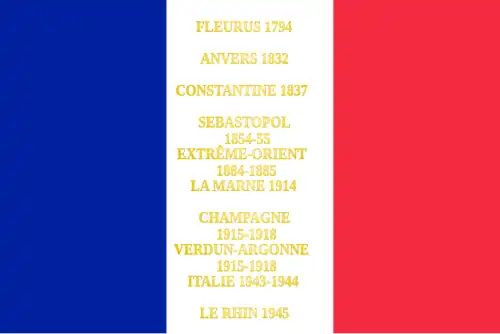 Fleurus 1794 Anvers 1832 Constantine 1837 Sébastopol 1854-55 Extrême-Orient 1884-1885 La Marne 1914 Champagne 1915-1918 Verdun-Argonne 1915-1918 Italie 1943-1944 Le Rhin 1945 |