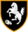 Insigne d'épaule de la 1re brigade de chars : un destrier cabré, portant une barde (armure) ; les couleurs sable et orangé rappellent la Garde.