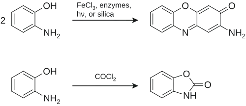 En raison de la contiguïté des groupes amino et hydroxyle, le 2-aminophénol forme facilement des hétérocycles. Ces hétérocycles, tels que les benzoxazoles, peuvent être biologiquement actifs et utiles dans l'industrie pharmaceutique[2].