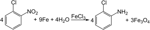 Lors de la réduction avec des copeaux de fonte en présence de chlorure ferrique, il se forme de la 2-chloroaniline :