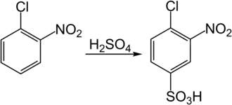 Lors de sa sulfonation, il se forme de l’acide 3-nitro-4-chlorobenzènesulfonique :