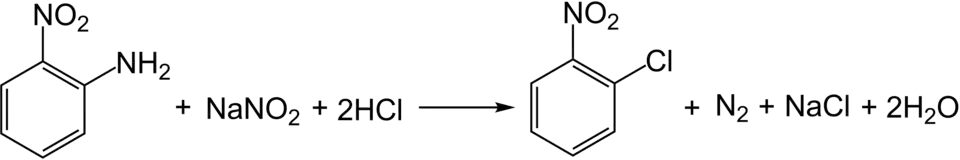 À partir du 2-chloronitrobenzène, la 2-nitroaniline est obtenue par chauffage à 170-200 °C avec une solution aqueuse d'ammoniaque à 30-34% à une pression de 30-40 atm :