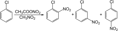 En laboratoire, le composé peut être obtenu par nitration du chlorobenzène avec du nitrate d'acétyle. Dans ce cas, cependant, non seulement on obtient du 2-nitrochlorobenzène, mais également ses isomères :