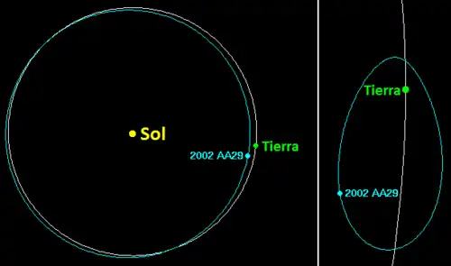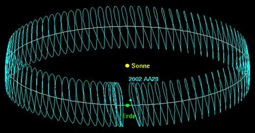 En raison de sa légère inclinaison orbitale de 4,3° par rapport à l'écliptique (le plan orbital de la Terre), son orbite ne coïncide cependant pas tout à fait avec celle de la Terre, mais est légèrement inclinée par rapport à celle-ci.