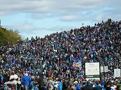 - 2 octobre : des dizaines de milliers de personnes[52] manifestent sur les Plaines d'Abraham pour la construction d'un amphithéâtre multi-fonctionnel à Québec et le retour des Nordiques. C'est la marche bleue[53].