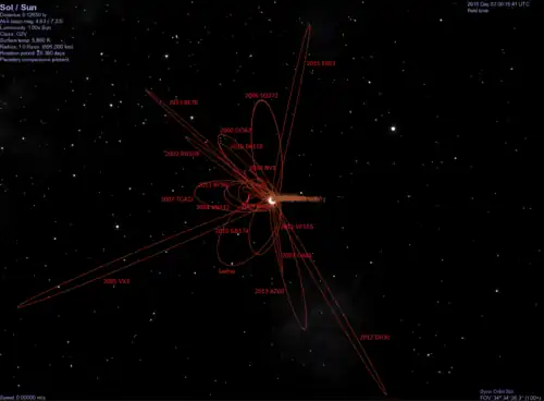 - ↑ (en) « JPL Small-Body Database Browser: (2012 VP113) », Jet Propulsion Laboratory, 30/10/2013 dernière observation (arc=~1 an)