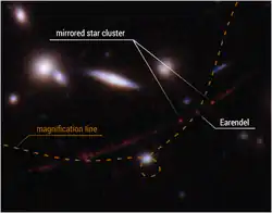 - ↑ Brian Welch, Dan Coe, Jose M. Diego et al., « A highly magnified star at redshift 6.2 », Nature, vol. 603, no 7903, , p. 815–818 (DOI 10.1038/s41586-022-04449-y)