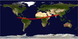 La zone où aurait pu avoir lieu l'impact potentiel, selon une estimation du début , couvrait une bande commençant à l'est juste au sud du Costa Rica et du Panama (avec un angle d'entrée rasant correspondant au cas où l'astéroïde frôlerait la Terre), qui continue ensuite entre la Colombie et le Venezuela jusqu'à l'Atlantique, traversant le golfe de Guinée (avec un angle d'impact presque vertical pouvant atteindre 83 degrés), puis le Nigeria, le Cameroun, la République centrafricaine, le Soudan du Sud, l'Éthiopie, le Yémen, la mer d'Arabie, et enfin un impact rasant à nouveau au-dessus du centre de l'Inde[13].