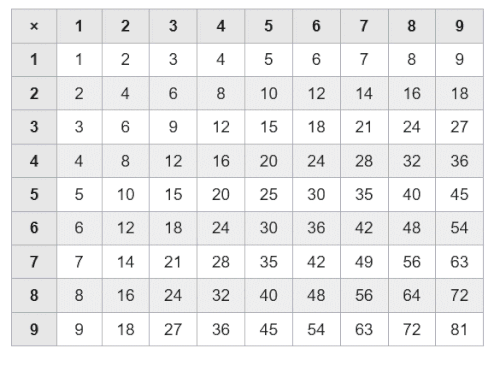 - la somme de tous les résultats de la table de multiplication des nombres de à