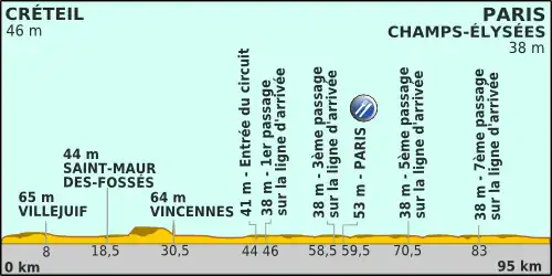 Le départ fictif fut donné de la préfecture de Créteil à 14h30 et le départ réel lancé à 14h50 de Créteil sur la Route nationale 19.