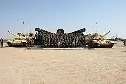 - 31e division blindée (division du tigre blanc) dont le siège est à Jhansi - Babina dans l'Uttar Pradesh, au centre de l'Inde. La 94e brigade blindée peut faire partie de la division ; il fait partie du Strike Corps[3] et a participé à des exercices avec l'armée singapourienne sous la direction de la 31e division blindée.