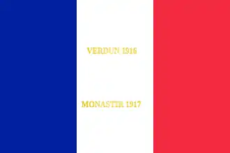 - ↑ Décision no 12350/SGA/DPMA/SHD/DAT du 14 septembre 2007 relative aux inscriptions de noms de batailles sur les drapeaux et étendards des corps de troupe de l'armée de terre, du service de santé des armées et du service des essences des armées, Bulletin officiel des armées, no 27, 9 novembre 2007