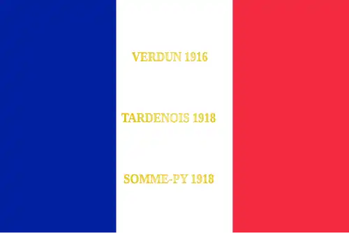 - ↑ Décision no 12350/SGA/DPMA/SHD/DAT du 14 septembre 2007 relative aux inscriptions de noms de batailles sur les drapeaux et étendards des corps de troupe de l'armée de terre, du service de santé des armées et du service des essences des armées, Bulletin officiel des armées, no 27, 9 novembre 2007