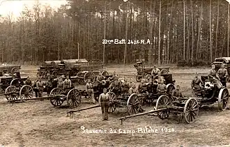 Le 243e régiment d'artillerie campagne[18] est reformé en octobre 1919 à partir du 5e groupe du 43e régiment d'artillerie, 33e, 34e et 35e batteries équipées de trois batteries de quatre pièces de 155 mm Schneider court modèle 1917 . En 1920-1922, rattaché à la 37e division d'infanterie (8e groupe de l'ACD37), il participe à l'occupation de la Rhénanie par le 30e corps d'armée du Général Mordacq dans le secteur de Wiesbaden (Hesse) et Mayence (Rhenanie-Palatinat).