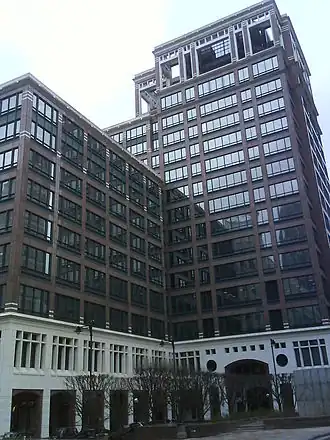 Au niveau du premier étage, le bâtiment est relié au 20 Cabot Square par une passerelle piétonne construite quelques années après la construction du building.