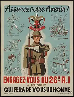 Affiche de recrutement pour le 26e RI de Périgueux dans l'Armée d'armistice