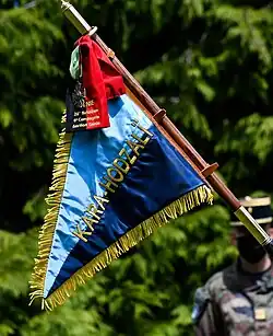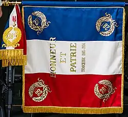 - ↑ Décision no 12350/SGA/DPMA/SHD/DAT du 14 septembre 2007 relative aux inscriptions de noms de batailles sur les drapeaux et étendards des corps de troupe de l'Armée de terre, du service de santé des armées et du service des essences des armées, Bulletin officiel des armées, no 27, 9 novembre 2007