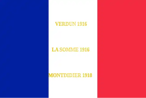 - ↑ Décision no 12350/SGA/DPMA/SHD/DAT du 14 septembre 2007 relative aux inscriptions de noms de batailles sur les drapeaux et étendards des corps de troupe de l'armée de terre, du service de santé des armées et du service des essences des armées, Bulletin officiel des armées, no 27, 9 novembre 2007