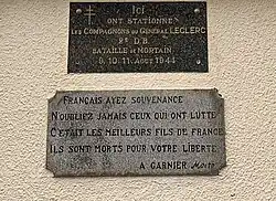 - ↑ Soldats de Leclerc morts pour la France 1940-1946, Monument commémoratif Place du 25 août 1944