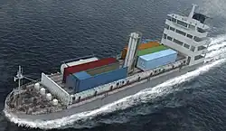 Club-K, déployé sur un porte-conteneurs (vue d'artiste).