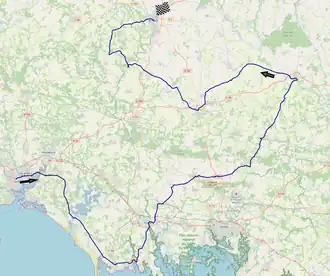 Deux ascensions sont au programme: la fameuse côte de Cadoudal (1,7 km à 6,3%), à Plumelec, et la côte de Pluméliau (2,2 km à 3,1%). Le sprint intermédiaire est tracé à La Fourchette (km 118). Les quinze derniers kilomètres présentent une fin de parcours vallonnée, à majorité descendante, sur des routes étroites et sinueuses. La victoire d'étape est propice aux sprinteurs.