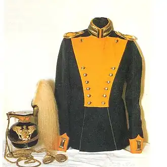 Vers 1900, l'uniforme du régiment se compose d'un col jaune citron, de rabais de défilé, de revers, d'avances, de galons et de boutons blancs. Les épaulettes sont jaune citron sur le support et sur le terrain. L'emblème du chapska est un aigle de garde en argent avec une étoile.