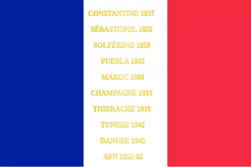 Constantine 1837 Sébastopol 1855 Solférino 1859 Puebla 1863 Maroc 1908 Champagne 1915 Thiérache 1918 Sud Tunisien 1942 Danube 1945 AFN 1952-1962 |