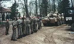 Nettoyage d'un canon d'un AMX-10 RC du 3e RH en mission pour la SFOR dans la région de Sarajevo en 1997.