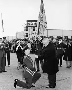 Le 5 mai 1961, l'unité a reçu sa bannière d'escadron pour 25 ans de service du représentant de la Reine en la personne de l'honorable Gaspard Fauteux, Lieutenant-gouverneur du Québec. Cet événement des plus remarquables de la vie d'un escadron a été marqué par un grand défilé solennel sur la rampe de la base aérienne de St-Hubert.