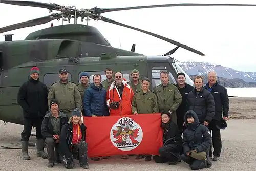 | Les membres d'équipages des 2 hélicoptères CH146 du 438 avec quelques rescapés à Arctic Bay Nunavut - 27 juin 2013 |