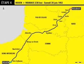 La 4e étape du Tour de France 1952 se déroule le entre les villes du Rouen, qui accueille le Tour pour la troisième fois, et Roubaix, ville-étape pour la sixième fois[1].