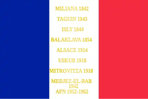 13. Décision no 12350/SGA/DPMA/SHD/DAT du 14 septembre 2007 relative aux inscriptions de noms de batailles sur les drapeaux et étendards des corps de troupe de l'armée de terre, du service de santé des armées et du service des essences des armées, Bulletin officiel des armées, no 27, 9 novembre 2007