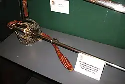 Fourragère aux couleurs du ruban de la croix de guerre 1914-1918, avec olive aux couleurs du ruban de la croix de guerre 1939-1945 (rouge striée de vert)