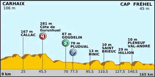 - Côte de Gurunhuel, 4e catégorie (kilomètre 45,5)
