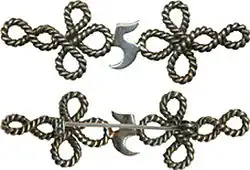 Motif la Hongroise, Il rappelle la boutonnière, très particulière et typique de la mode hongroise, brodée sur les uniformes des premiers hussards engagés en France au XVIIIesiècle.5erégiment de hussards, broche des épouses.