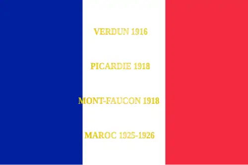 - ↑ Décision no 12350/SGA/DPMA/SHD/DAT du 14 septembre 2007 relative aux inscriptions de noms de batailles sur les drapeaux et étendards des corps de troupe de l'armée de terre, du service de santé des armées et du service des essences des armées, Bulletin officiel des armées, no 27, 9 novembre 2007