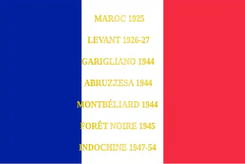 Maroc 1925 Levant 1926-1927 Garigliano 1944 Abruzzes 1944 Montbéliard 1944 Forêt-Noire 1945 Indochine 1947-1954 |